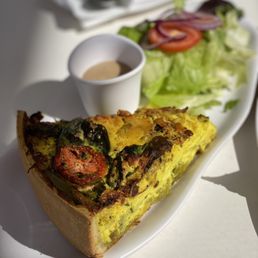 Great place! Their pastries are delicious and their Quiche Lorraine is incredibly lite and fluffy. The Quiche is served with a side salad that is VERY good. Next time we have a brunch at our house we will order one of their Quiches, they are that Good! Just love sitting outside, they put up bird spikes to keep the pigeons away, and they work!!!
